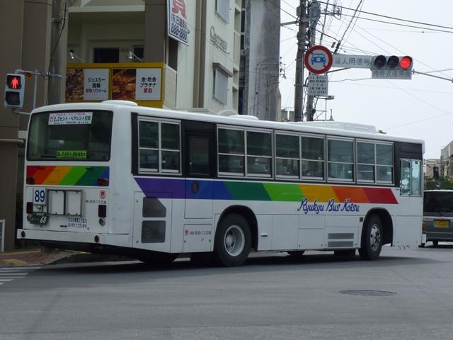 琉球バス交通成立し、既存車両の一部がレインボーカラーへ塗り替えられた車両で
