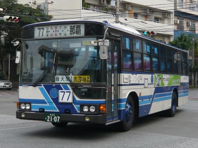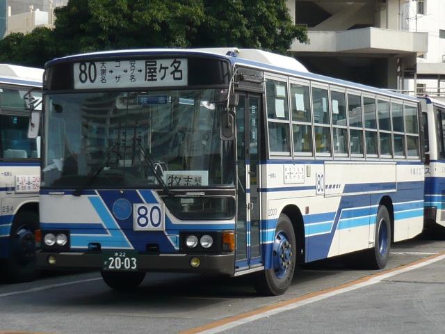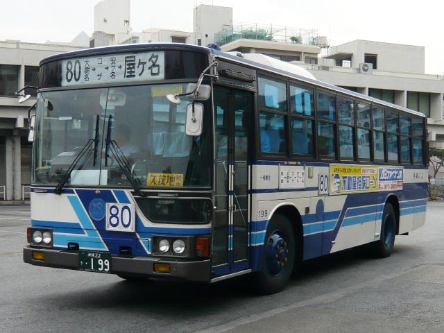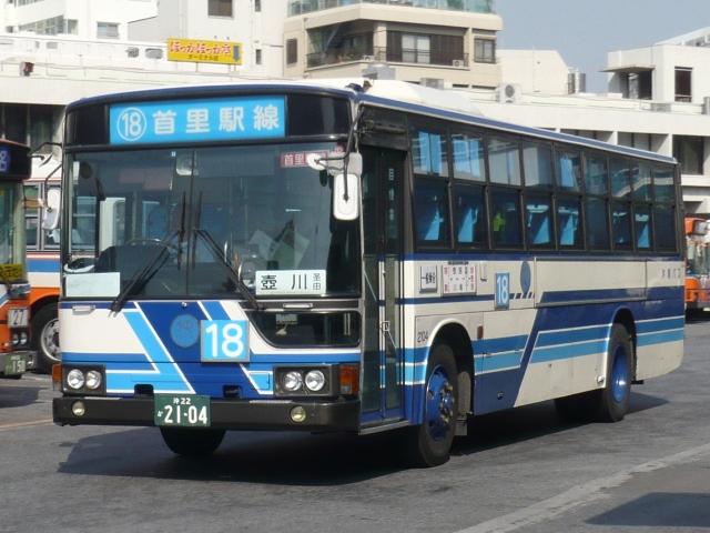 は三菱ふそう車に統一されており、雑多な車両が活躍する沖縄の路線バスでは珍しい存