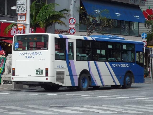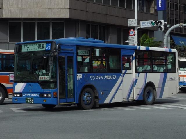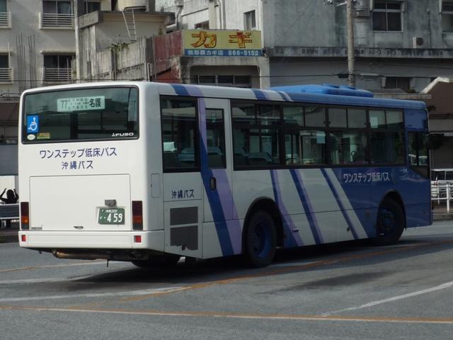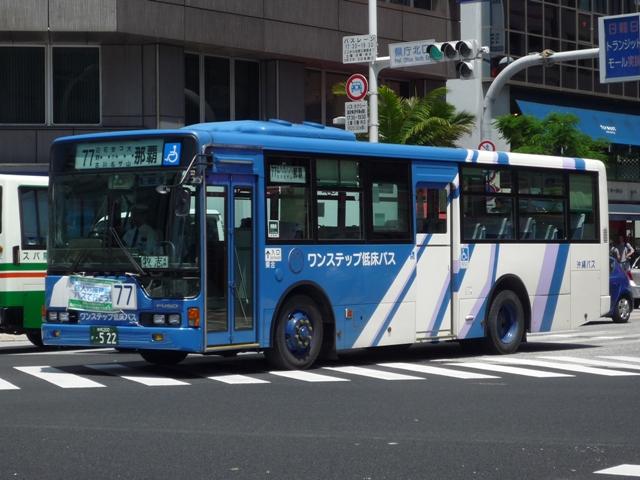 おそらく09年導入車。自社発注のワンステップ車は77番名護東線を中心に運行