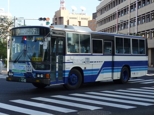 角目ライトに青色の全引側面窓のMKは千葉シーサイドバスからの移籍車。