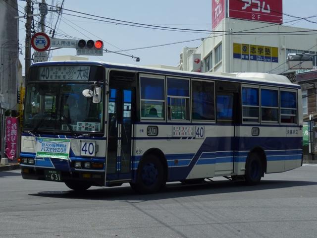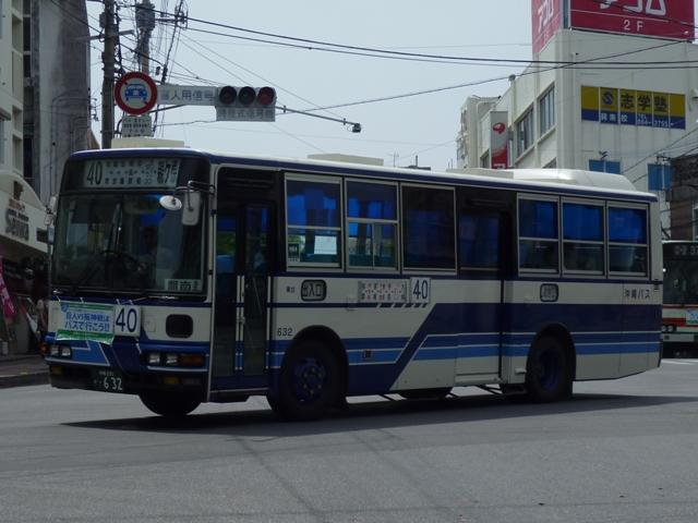 通りの沖バスカラーで登場。行先表示はLEDを装備し、いよいよ移籍車にも本格的