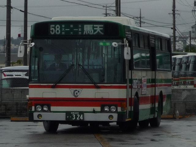 向きシート配置がネックとなり、画像の324は平日のみ運行の58番馬天琉大泡瀬