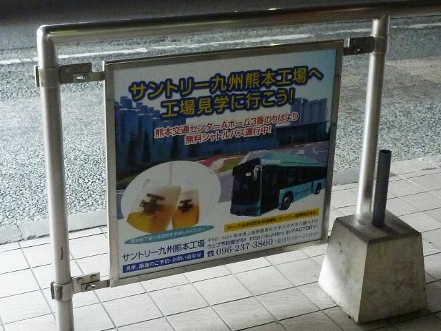 サントリー九州熊本工場への無料シャトルバスは2013年2月まで水前寺駅通りから