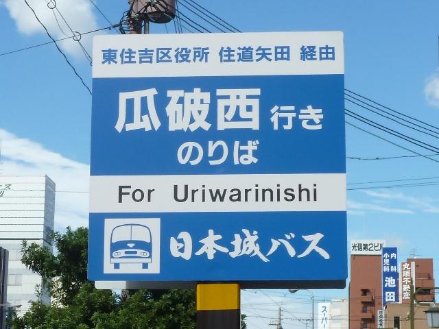 最後にバス停の画像。バスのロゴがどうみても川崎オバQボディ。日本城タクシーの