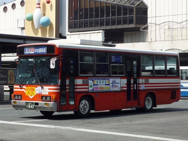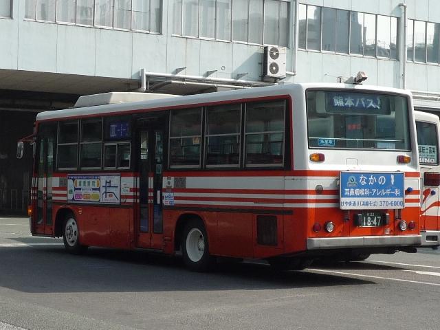 見かけた熊本バスの中で最古参ナンバーだった1747。熊本バスでは移籍車も在籍して