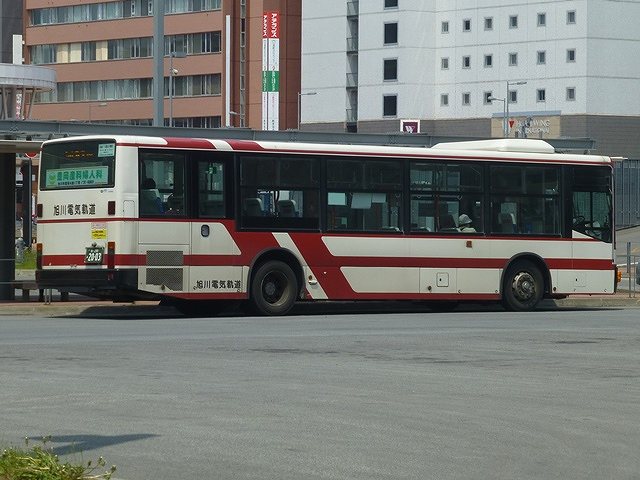 2010年代から登録番号を希望番号で取得するようになった旭川電気軌道。登録番号の頭数字はどうやら用途・登録地で区分しているようで、自社発注の一般乗合車は頭数字「2」+登録順の連番を採用しています。
