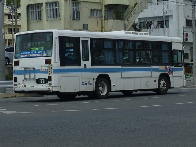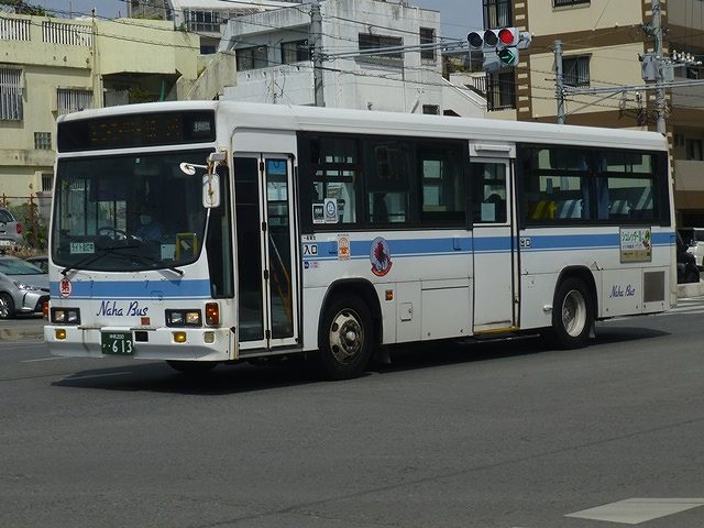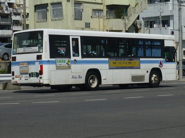まずは東急バスから移籍したU規制車のRMツーステップ車。ここ数年の新車・移籍車導入により、那覇バスでも残り少なくなったU規制車のうちの1台で、2006年に行われたコミュニティバス実証実験「小禄みぐい線」用に、まとまった台数導入した中型移籍車の生き残りでもあります。