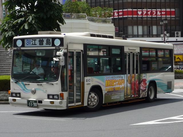 ようで、これまで少数派の三菱ふそう車を導入。側面は「人にやさしいノーステップバス」