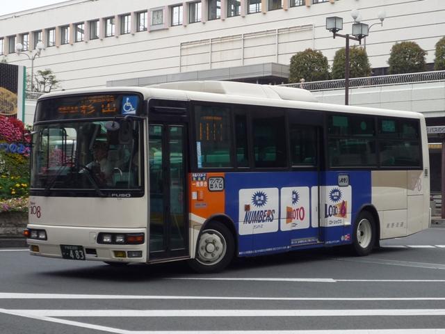 グループカラーの中型移籍車。正面「108」のロゴ位置がこれまでとは反対側。特に決