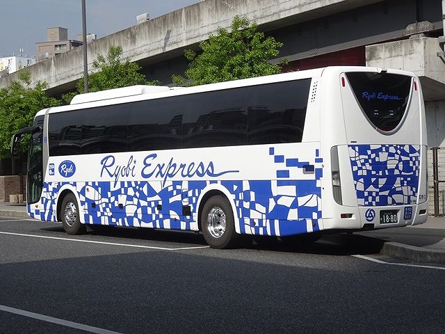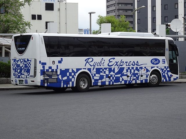 両備バスの高速車塗装デザインは2000年代に岡山電気軌道の岡山桃太郎空港リムジンバス専用車の色違いみたいなデザインも採用していましたが、現在は白地に青のモザイク模様というデザインを採用しています。