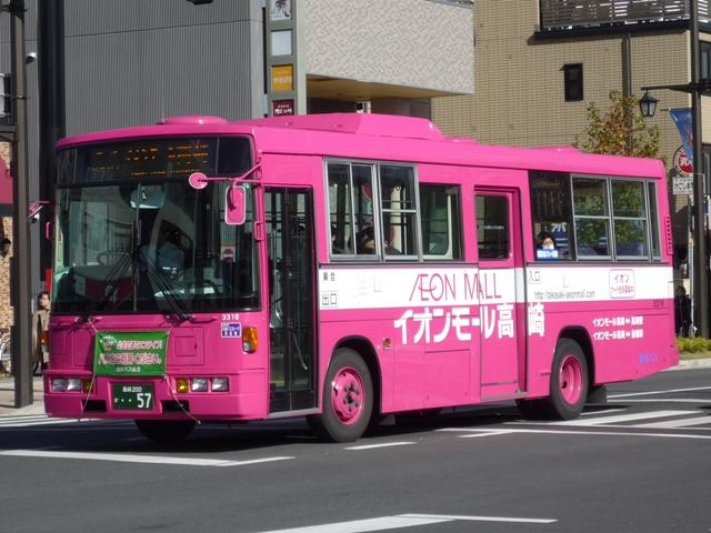 高崎を訪れたのは約1年ぶり。イオンモール高崎への路線にはイオンカラーの大型