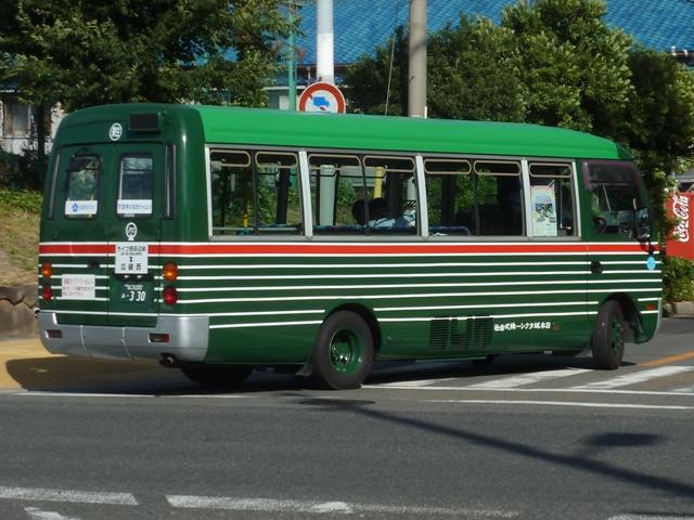 このシリーズでは初となるマイクロバスの右斜め後からの画像。日本城バスこと、日本城