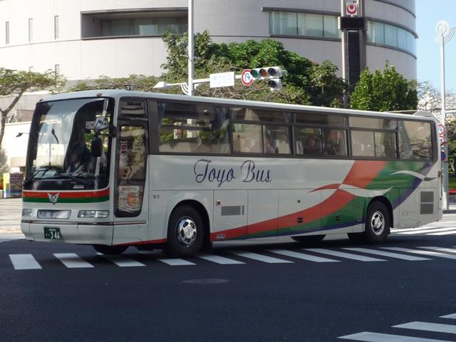 東陽バスに限らず、沖縄では貸切車も結構古参車が活躍しています。塩害対策など