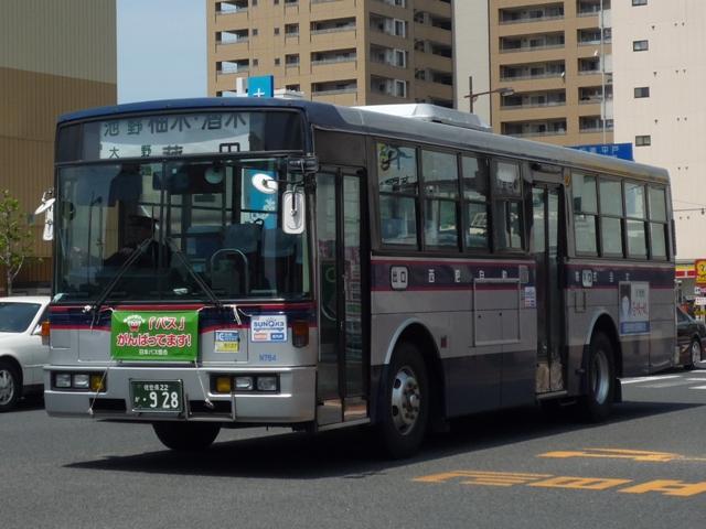 フロントガラス下のロゴから分かるように西工ボディの日野HT。