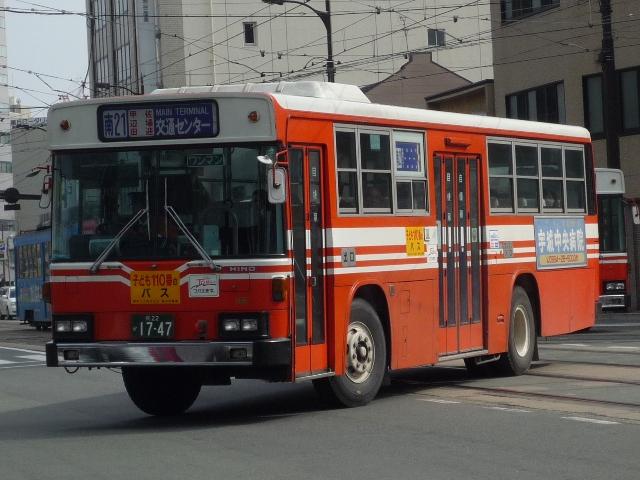 見かけた熊本バスの中で最古参ナンバーだった1747。熊本バスでは移籍車も在籍して