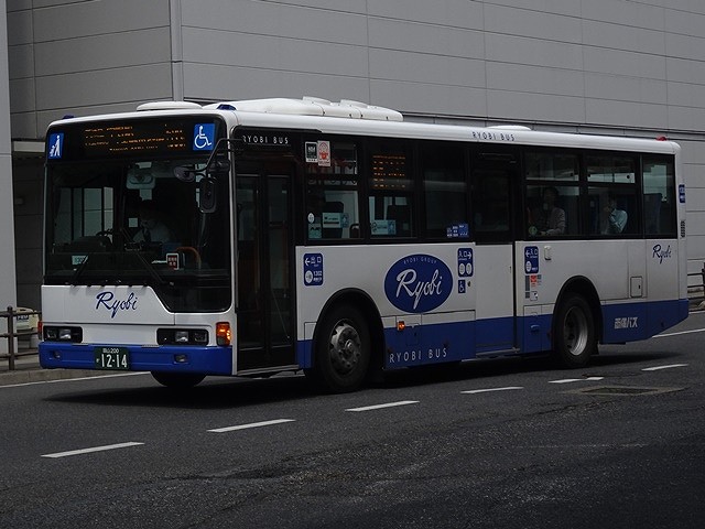 こちらは郊外路線むけに導入したMP短尺ワンステップ車。正面の「Ryobi」ロゴは「i」を★にした現行デザインのものに変わっています。