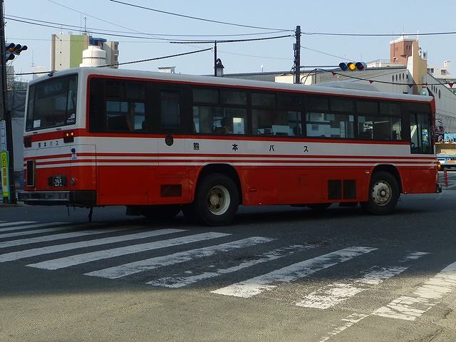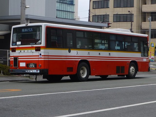いすゞ車の導入が多い熊本バスですが、純正ボディのキュービックはU規制車となってから登場。少数派だったこともあり、熊本バスから姿を消した模様。