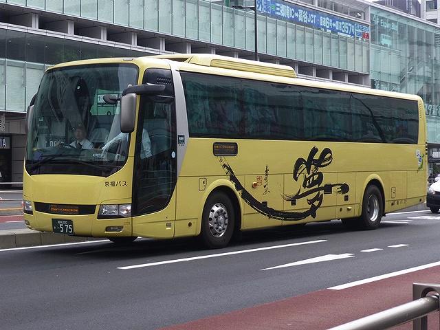 2008年から福井出身の書家・吉川 壽一氏の作品による「SYOINGバス」と 」なっています。デザインされた書は路線毎に異なり、画像の東京線は「夢」となっています。側面固定窓仕様の三菱ふそうエアロエース。