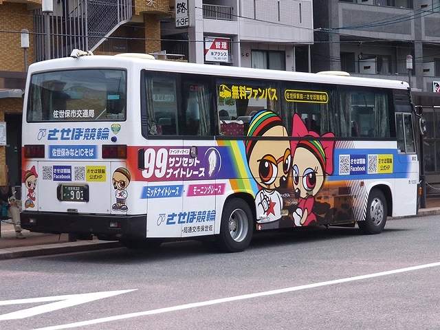佐世保競輪場の無料送迎バスも佐世保市交通局が担当。古参格の日野RR貸切車を専用車に転用していましたが、側面固定ガラスに内装は後部固定サロンシートと、昔の豪華観光バスを髣髴させる仕様が特徴。