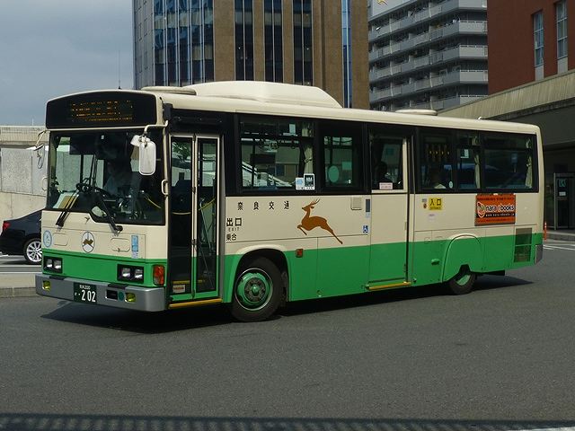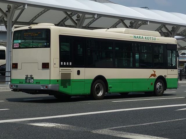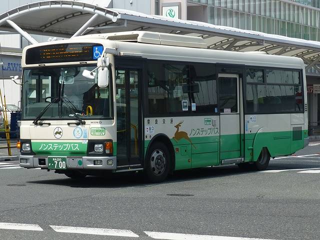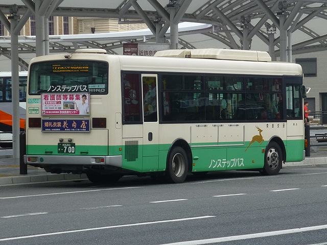 ここからは、いわゆる中型車の画像を並べていきます。9m尺大型車にかわり導入を開始した中型ワンステップ車。奈良交通は2000年代初め頃に7mサイズの低床車を大量導入していたため、日野RJワンステップ車は少数派です。