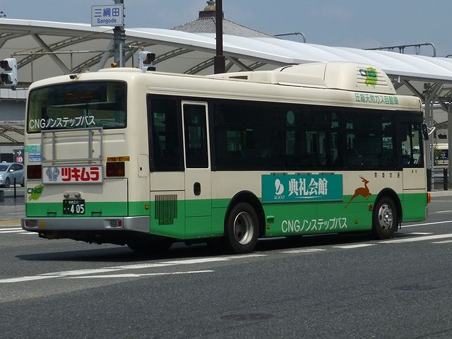 後面側からの画像だけですが、いすゞLRのCNGノンステップ車。CNGノンステップ車は奈良交通で2台在籍するだけのレア車。奈良交通ではまだまだ新しい車両の範疇といえそうですが、タンクの検査期限を考えると・・・。