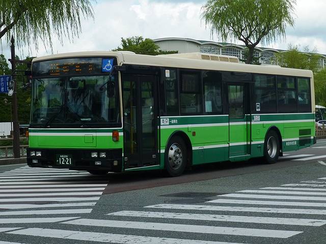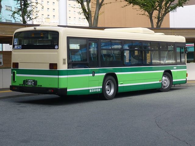 1つ目ヘッドライトの日野KRワンステップ車も正面行先表示横に車椅子マークがありませんが、こちらは単なる貼り忘れと推測。元はホテル送迎の自家用車だったといわれる車両なので、元々貼ってなかったのかもしれません。