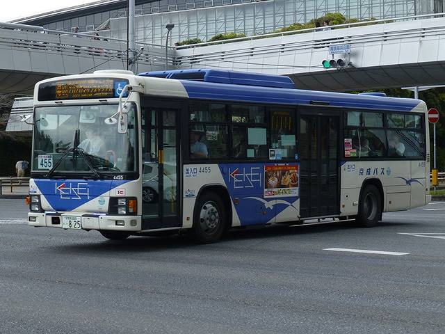 京成バスではハイブリッドノンステップバスも導入。日野のブルーリボンシティハイブリッドは、画像の「カモメバス」カラー車だけでなく標準塗装車もM尺で導入しています。