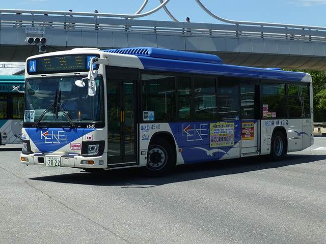 ラッシュ時の収容力を考慮し、「カモメバス」カラーの車両はノンステップ車も中尺となるN尺車を採用しています。