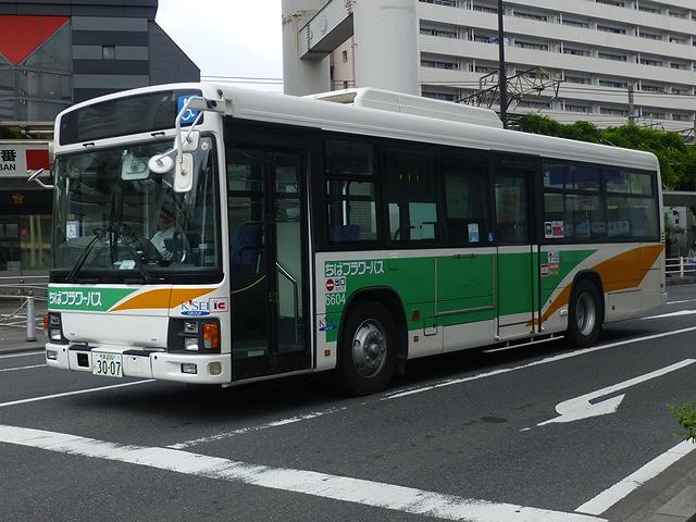 こちらは日野KVワンステップ車。PJ規制車は外観からいすゞ・日野の見分けが出来ませんが、ちばシティバスの社番はメーカー区分も無い単なる連番のためお手上げです。