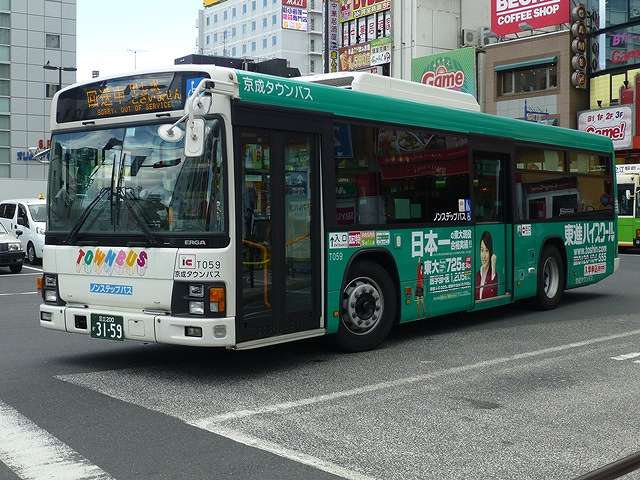 まずは京成バスの主力車種といえる、いすゞLVノンステップ車。一般乗合車の塗装デザインは1990年代に「