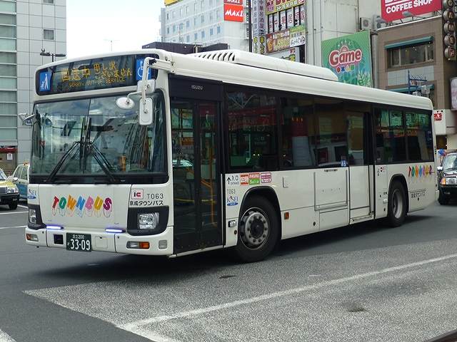 塗装デザインは白色ベースに建物風なTOWNBUSロゴを採用しています。