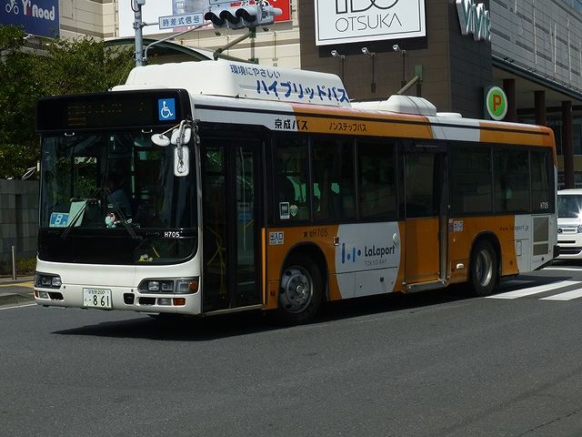 貸切事業は京成バスシステムに移管しており、京成バスは契約貸切車・特定車のみ在籍しています。画像は「ららぽーとTOKYO-BAY」への無料シャトルバス専用車となっている日野ブルーリボンシティハイブリッド。