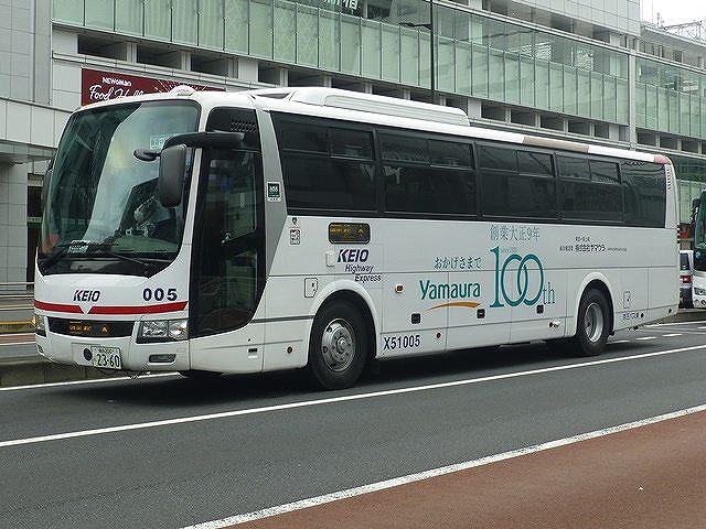 10年導入のMS。画像の車両は、ヤマウラ創業100周年をアピールするラッピング車となっていますが、社番表記にご注目。高速・貸切車では省略される頭アルファベット「X」を表記しています。高速車のアルファベットは本当に「X」なんだということをあらためて認識しました。ちなみに同じラッピング車となっている日野セレガに「X」の表記はありません。