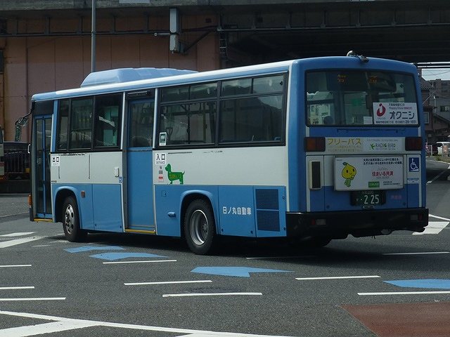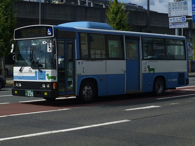 ジェイバスの中型路線車モデル整理により、HR9mサイズの販売が終了。以降、日ノ丸自動車ではOEMモデルのKRノンステップ車の導入が続きます。塗装デザインはチマチマとしたマイナーチェンジをしていますが、このあたりの導入車両まで扉部を塗り分けた塗装デザインを採用していました。