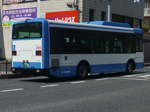 後面側からの画像のみですが、後面にも行先表示を装備した日野RJワンステップ車。交通バリアフリー法の施行後まもなく導入したワンステップ車は既存車同様の上下開閉サッシ窓仕様となっています。