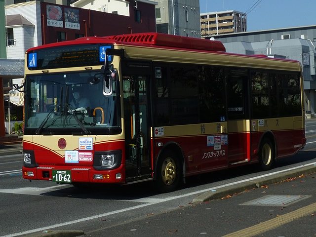 ノンステップ車の本格導入を開始したのは2016年から。この年から祐徳自動車時代の塗装デザインが復活しました。まずは、いすゞLRノンステップ車。