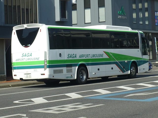 佐賀空港接続バス専用車は佐賀空港の新規路線就航や増便のタイミングで移籍車導入を行っており、2017年に登場したのが車号850の三菱ふそうエアロエース。ナンバープレートは東京オリンピック仕様を採用しています。
