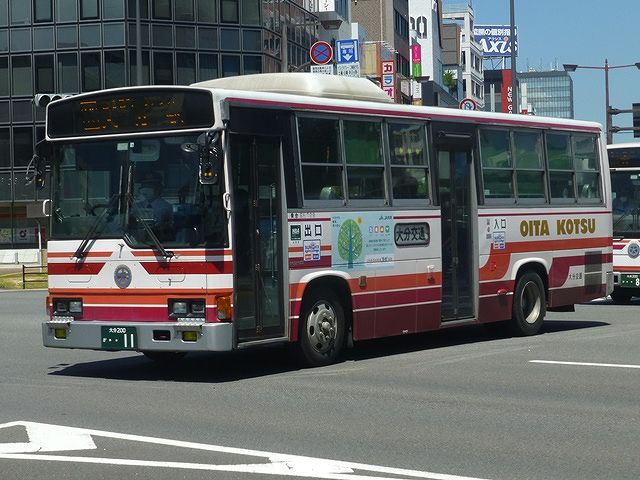 同じく99年導入車から、大分交通初のノンステップバスとして登場したいすゞLR。99年から販売を開始したいすゞエルガミオの初期グループでもあります。中扉はグライドスライド仕様となっており、いかにも初期ノンステップバスという感。側面窓はエルガミオ標準の上部開閉の逆T字と呼ばれる仕様で、行先表示は当初から窓部に設置していました。