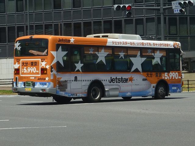 導入当時はまだまだ珍しい存在だったノンステップバスをアピールすべく、側面窓上に「NON STEP BUS」の表記があるのですが、ジェットスターのラッピング車となってからは隠れてままです。