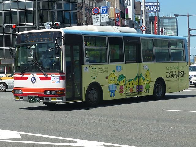 年式により純正ボディだったり富士ボディだったり西工ボディだったりと、バラエティの豊富さに定評がある大分交通。04年に導入した中型乗合車は西工ボディを採用。純正ボディでの導入が続いていた日野RJワンステップ車も西工ボディで登場しました。同時期に純正ボディが西工ボディとなるRMワンステップ車も導入しています。