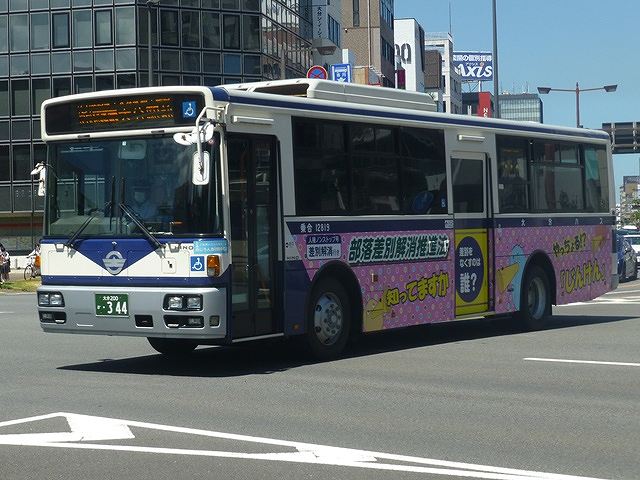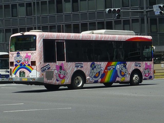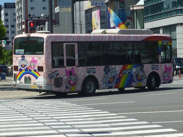 同じく05年導入のKRワンステップ車ですが、こちらは2010年に誕生した大分バスの公式キャラクター「のるっちくん」をデザインしたラッピング車となっています。