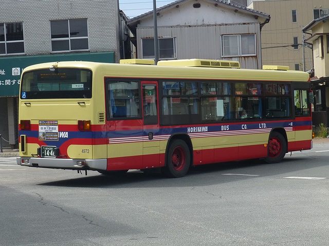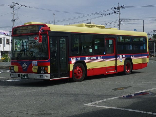 さて、堀川バスは車両ごとにだいたいの運用路線が決まっているので、西鉄柳川駅前で見ることが出来る車両はほぼ同じ顔ぶれになります。今回並べる画像はすべて川崎鶴見臨港バスから移籍したV8エンジン搭載のいすゞエルガとなることをあらかじめおことわりしておきます。