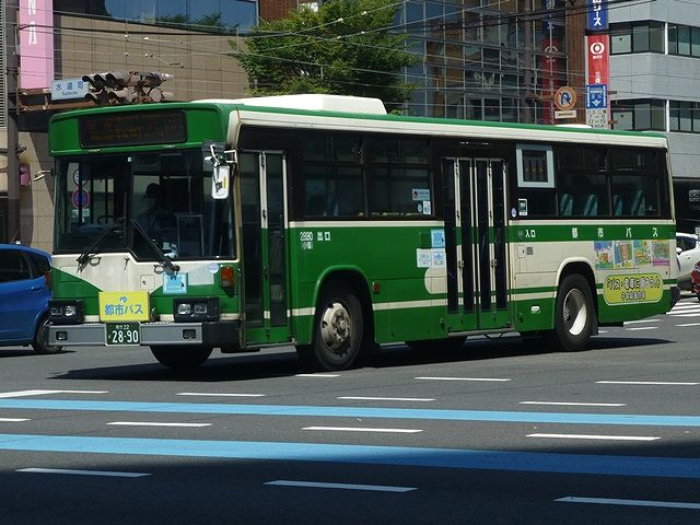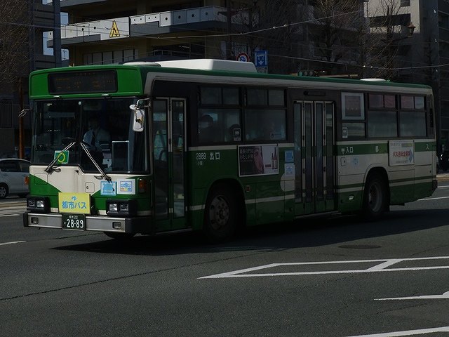 熊本市営バス塗装で運行している都市バス車両は、市営バスが独自に採用していた正面の動物看板掲示部に今も「都市バス」の看板を掲示しています。