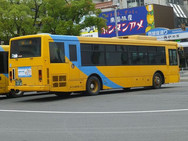 今回、記録できた大型車の古参格だったのが、画像の09年に導入したRAノンステップ車。汎用テールライトを装備しています。鹿児島市営バスは西工ボディの大型ノンステップ車をUD車のほか、OEM車だった三菱ふそうAAも導入しましたが、どうやら減車の際に姿を消したようです。