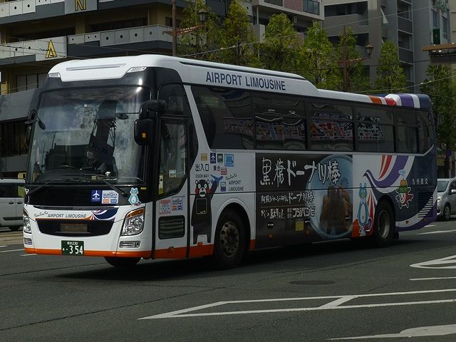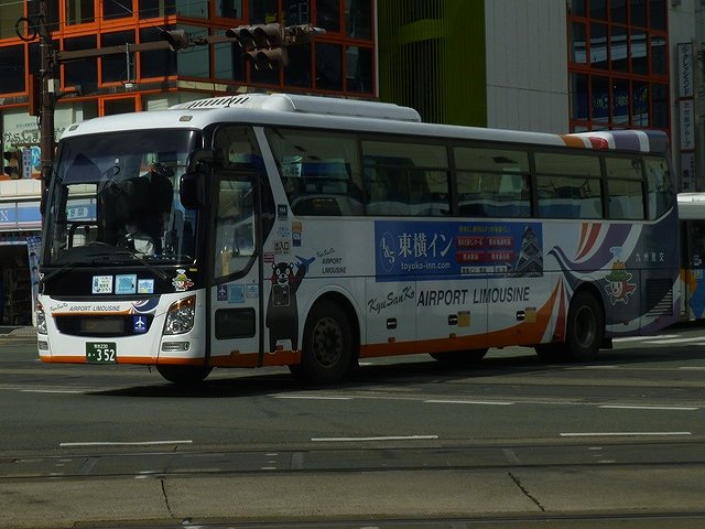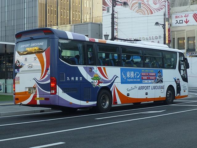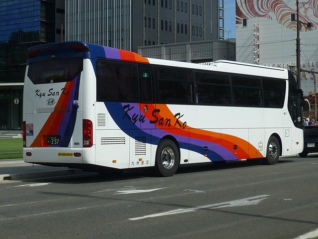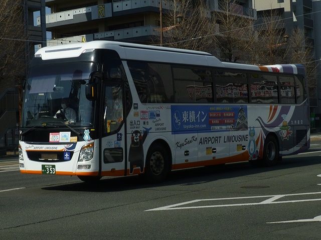 不死鳥カラーながら空港リムジンバス以外の運用も考慮し、側面・後面は「Kyu San Ko」ロゴを採用しています。メインは空港リムジンバスですが、トイレ無し車両で運行している「やまびこ号」や「九州横断バス」の運用に入ることもあります。