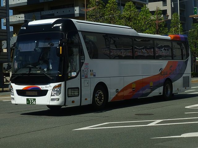 九州産交バスグループは2012年に現代ユニバースを3台導入し、そのうちの2台が空港リムジンバス専用車となりました。空港リムジンバスとなった1台が前回画像を並べた熊本200か957で、もう1台が希望番号で「787」を取得した画像の全日空ラッピング車です。登録番号の「787」は、当時全日空が鳴り物入りで導入した「ボーイング787」をあらわしています。導入当初から全日空のラッピング広告車となっていますが、ラッピングデザインは何度か変わり、現在は早期の予約がお得なことをアピールしています。