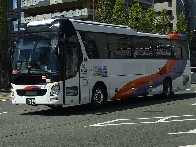 九州産交バスグループ編その10は、ナンバープレートを希望番号で取得したハイデッカー車両画像を並べていきます。メインは「35※」ナンバーの現代ユニバースの画像となります。