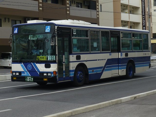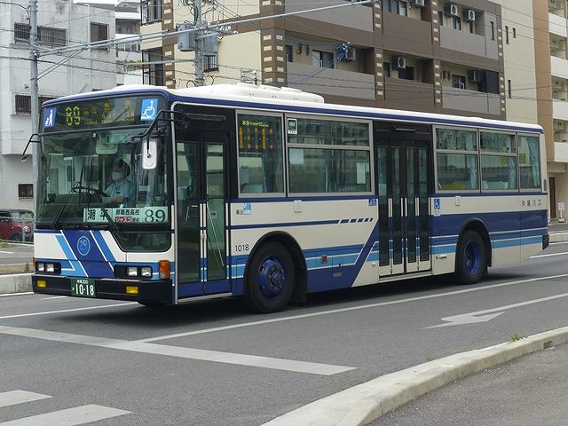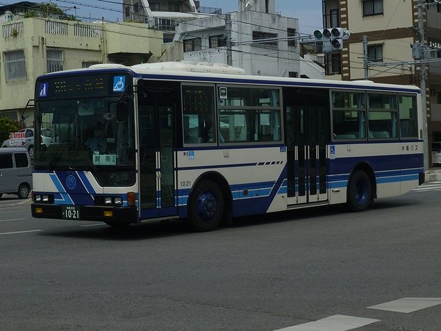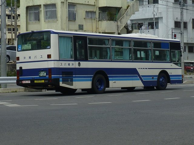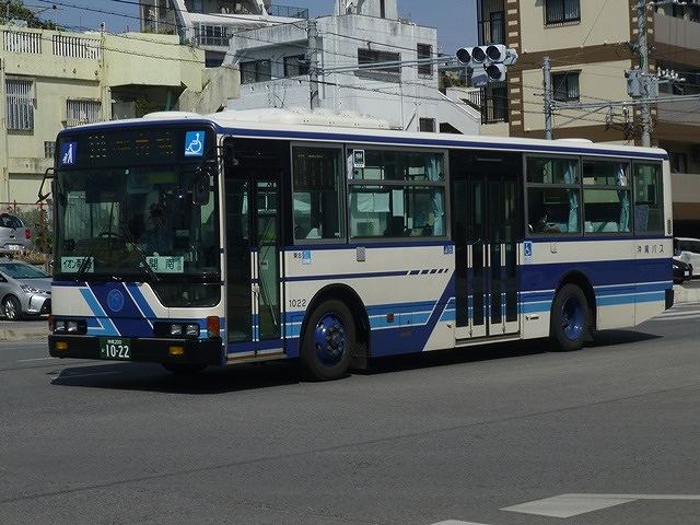 一時期は中型移籍車を積極的に導入していた沖縄バス。ローカル運用だけでなく、長距離路線の運用に入っている車両も見ることが出来ました。残念ながら今回記録出来たのは川崎市交通局から移籍したMKワンステップ車だけ。川崎市交通局から移籍したMKは独特な側面行先表示周りの銀サッシ形状が特徴となっています。