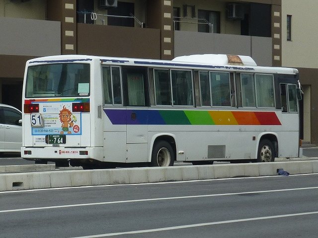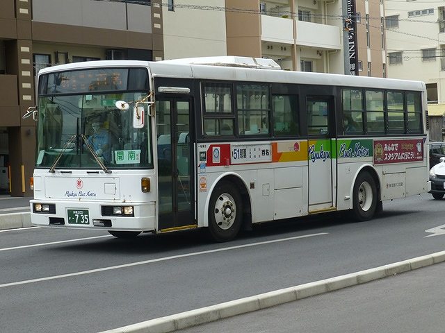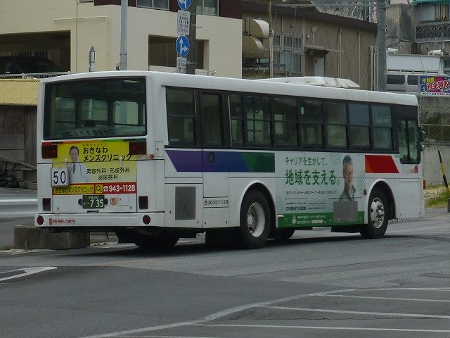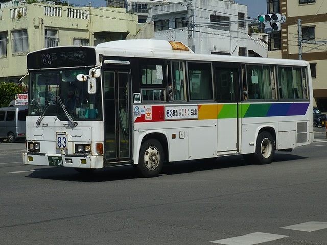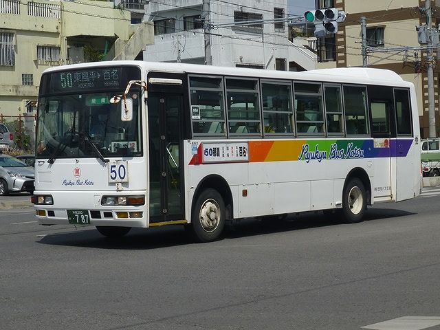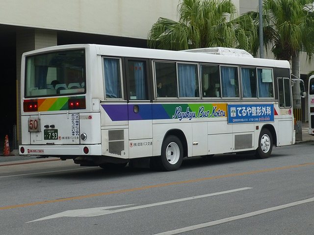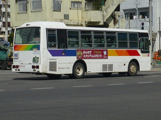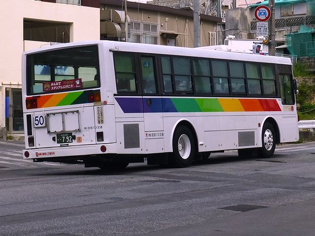 旧琉球バス時代は縁の無かった三菱ふそう車ですが、琉球バス交通となってから少数ですが移籍車を中心に在籍するようになりました。南海バスから日野RJに続く導入となった、三菱ふそうMKツーステップ移籍車。