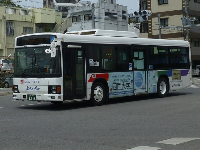 那覇バス・琉球バス交通は2013年からいわゆる一括交付金を活用したノンステップバスの新車導入を開始しました。那覇バスのノンステップバス新車は市内線配置中心で、市外線は移籍車メインという状況が続きました。とはいえ、移籍車はかつてのような何でもアリというものではなく、京浜急行バスからのワンステップ車・ノンステップ車となったので仕様の共通した車両が揃うことになりました。